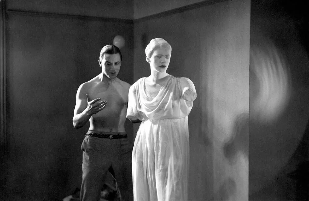Her time as a model was more tumultuous than is commonly understood, however. In the public eye, she profoundly impacted women’s gender expression as this androgyne figure responsible for the popularisation of short haircuts. Her early work was even reprinted in World War II to convince female factory workers to cut their hair short as a stopgap solution for headlice epidemics. Behind the scenes, however, Miller felt trapped. Sketches were later found in her journals, drawn by Miller in the early 1930s, depicting a woman pinned in place on stage by daggers. She was pulled from place to place as a New York socialite and reduced to a clotheshorse. This mirrored the worst elements of her early childhood, forced to model nude by her father from the age of 8. The context of her childhood, if acknowledged at all, is often glibly mythologised, pitching her constant reinvention as a response to this traumatic experience. I understand the desire to reposition suffering like this as something not entirely senseless, but these events do not need to fit a satisfying narrative. It left Miller unmoored in this early period of her life, unsure if she ‘ever was meant to fit together’. Miller eloped to Paris in the late 1920s to pursue her Pictorialist approach to photography that the newly formed standards of commercial modelling wouldn’t allow for. Ironically, her face was partly used to create these standards. Given a letter of recommendation by a mentor, Miller crossed the world to pursue a figure as popular and revitalising as her. Her future professional and romantic partner, Man Ray.