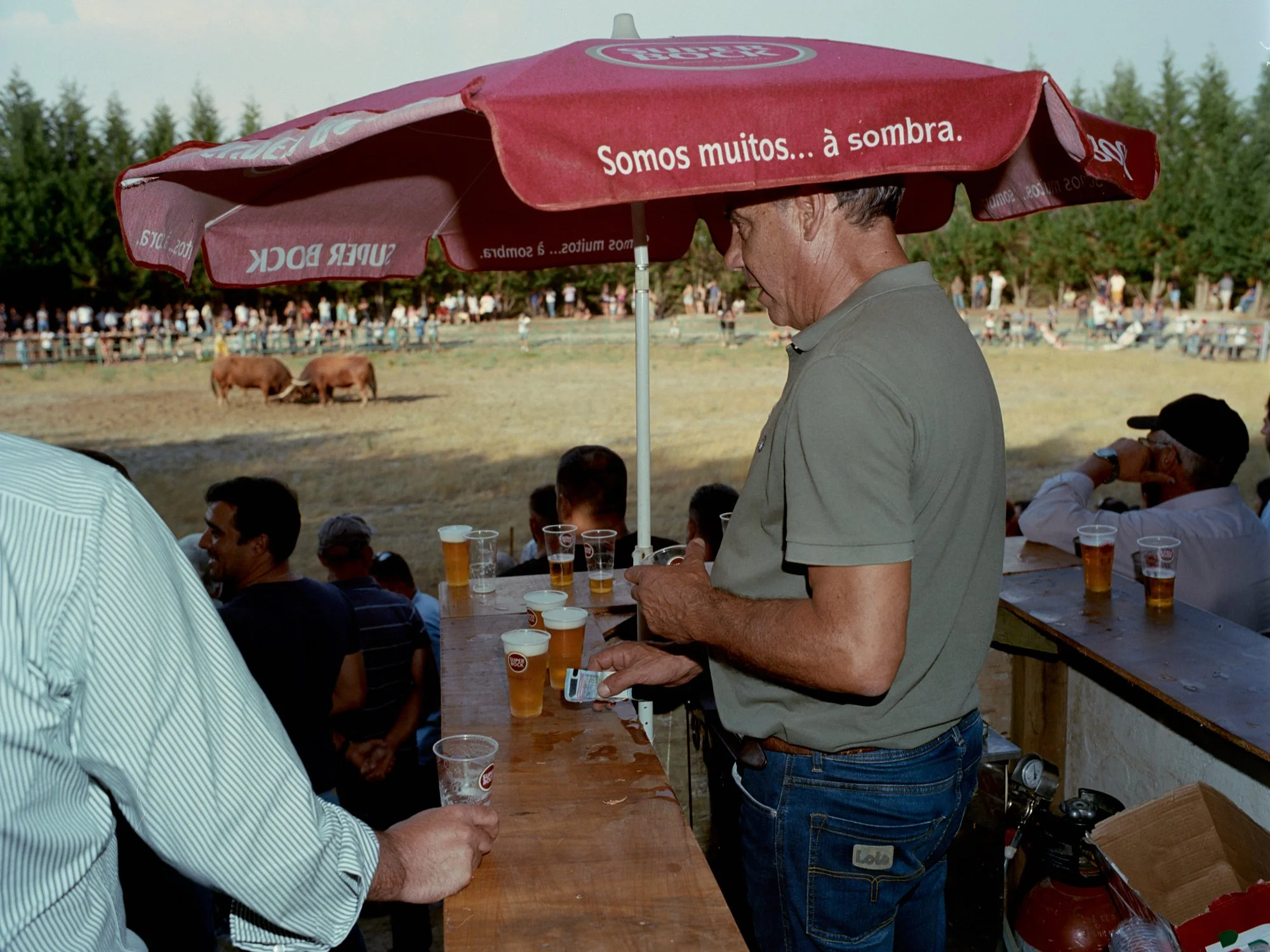 The photographs presented here were made in the northern interior of Portugal across different seasons, during repeated encounters with the deeply rooted tradition of Chegas de Bois. The artist returns to the same situations and spaces at different times, drawn to the bulls, symbols of regional power, and the surrounding mountains. While bullfights are a central element, the work focuses on the broader context of tradition, social interactions, and environment, offering a deeper and more nuanced understanding of the region’s unique cultural landscape.